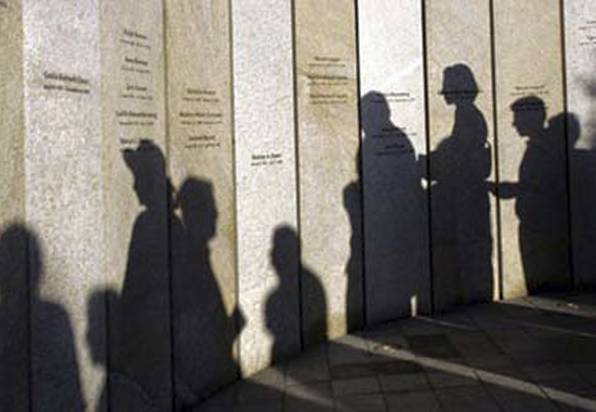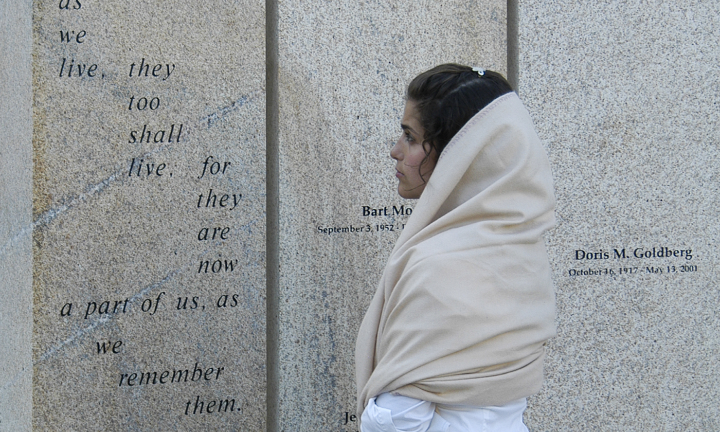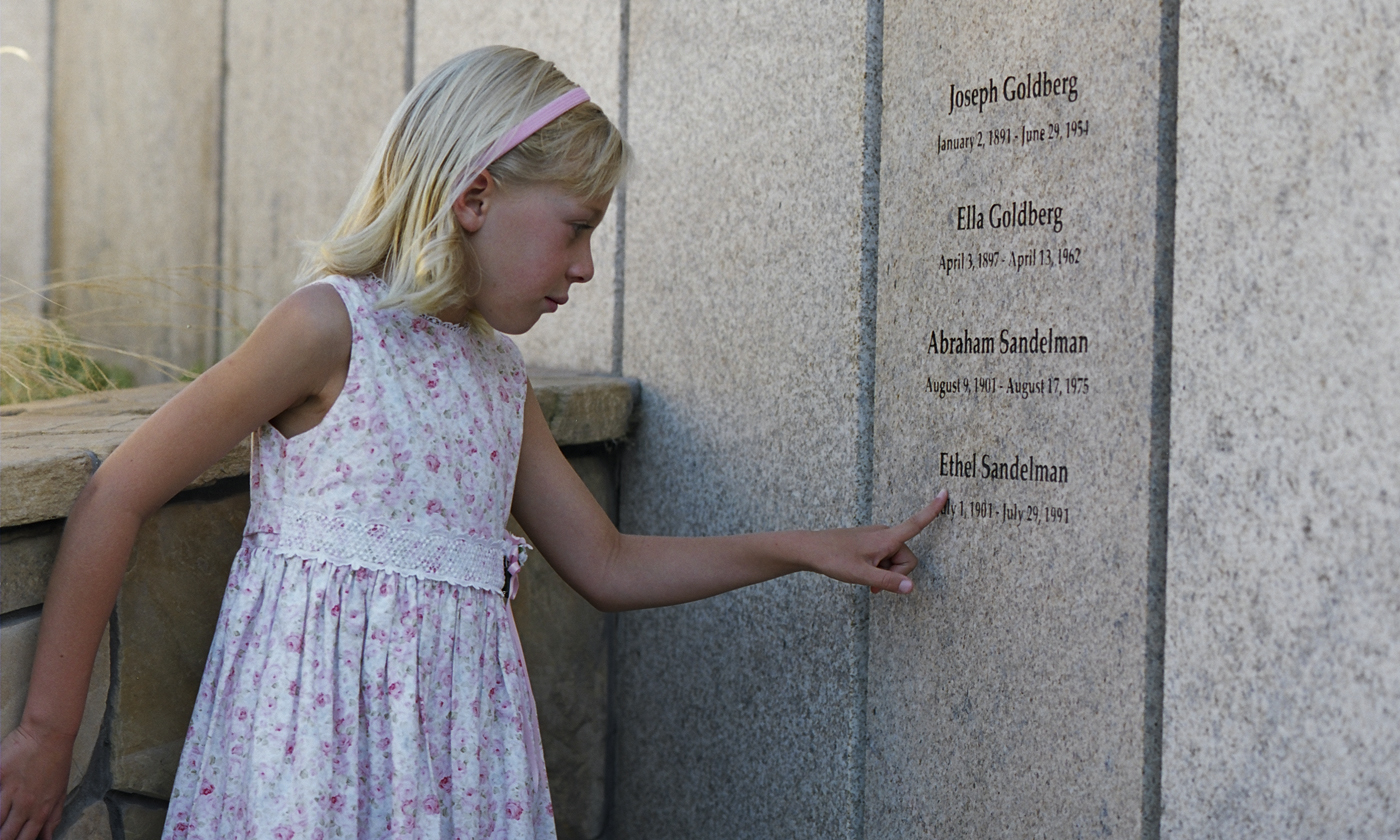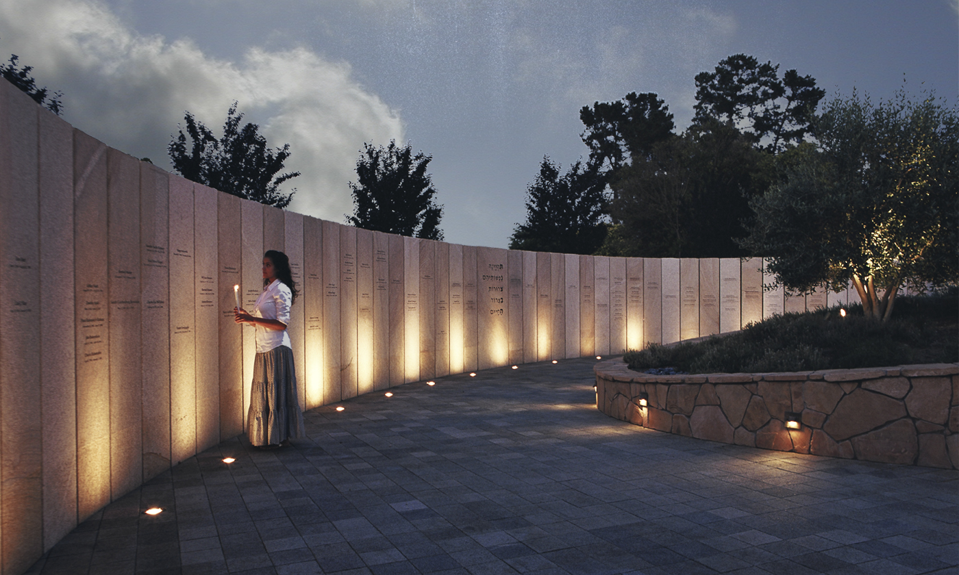 The Congregation Shir Hadash outdoor Memorial project is a serene gathering place for temple congregants and serves as the focal point to remember, honor, and celebrate family, friends, and generations past. Seventy-five vertical granite monoliths, which display prayers and names of loved ones, form an outdoor room made of two interlocking ovals. The ovals have a symbolic quality — they embrace the feeling of family and how we are intertwined in life and also in death. Each wall monolith contains a number of names, and the monoliths are placed so that light can pass through between them. During the day, the light creates bright stripes that move around the memorial so one is always aware that the day is changing. When asked initially what congregants wanted to feel in this space, one member replied, “I want to breathe differently.”