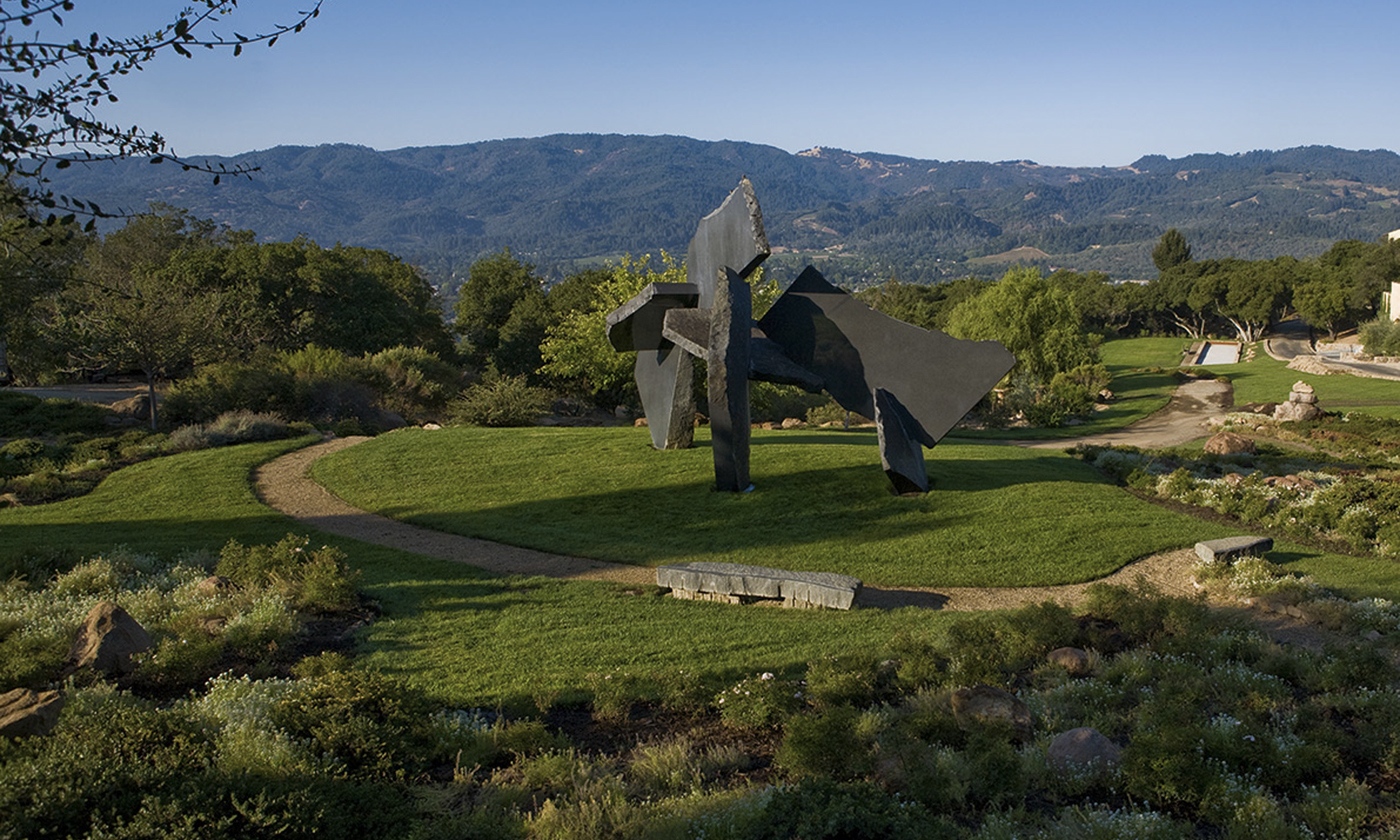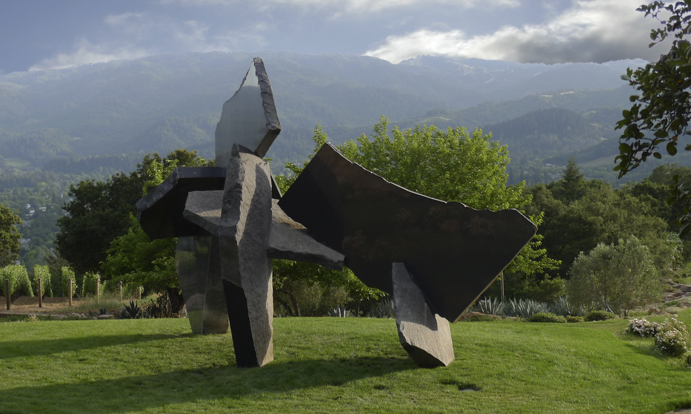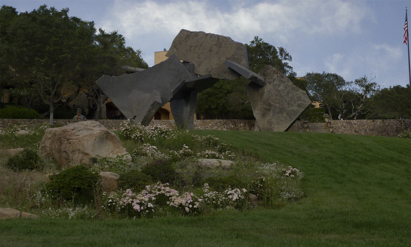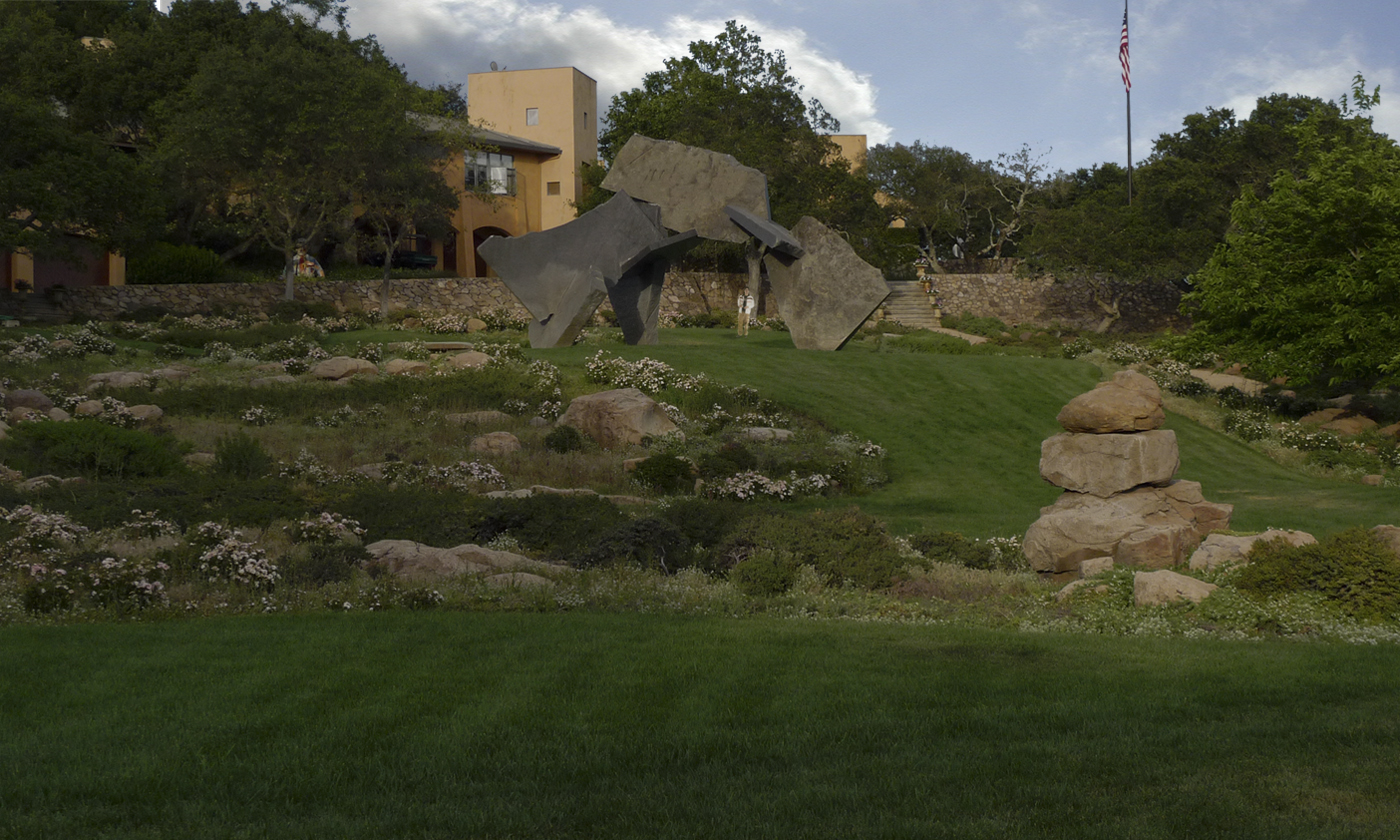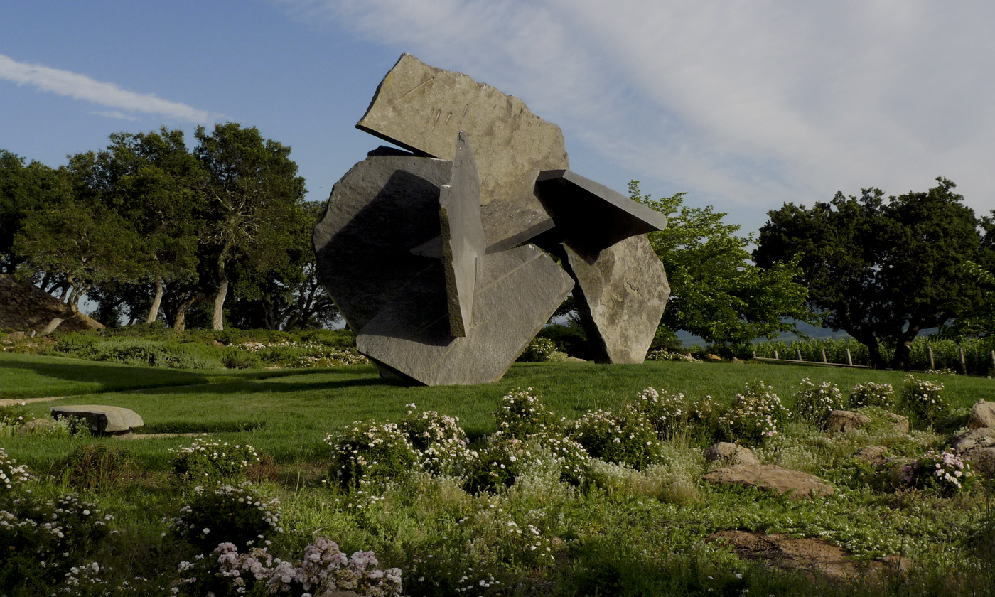 Seven Stones was inspired by the artist’s travels in Italy, of which the countryside of the Napa Valley is so often reminiscent. “The broken columns, fragmented soaring arches, and crumbled porticoes of Italian ruins are very powerful to me as a sculptor, not only for the objects themselves, but as entire environments tangled with myth, circumstance, and imaginings. It is this emotional and physical interaction that I hope to capture with this sculpture and environment.”