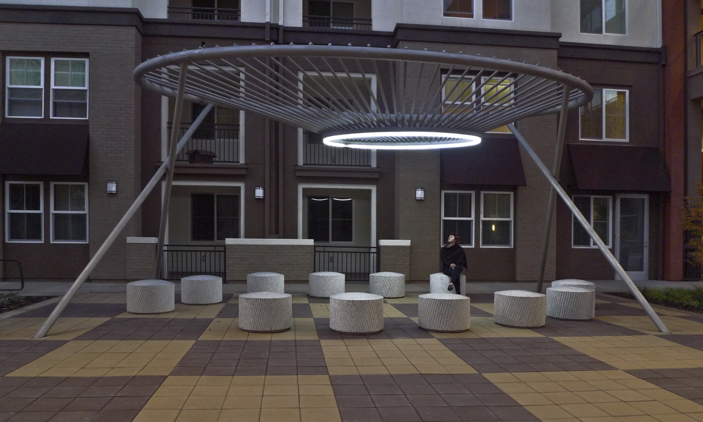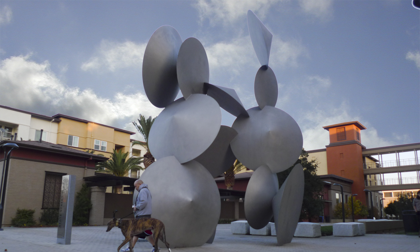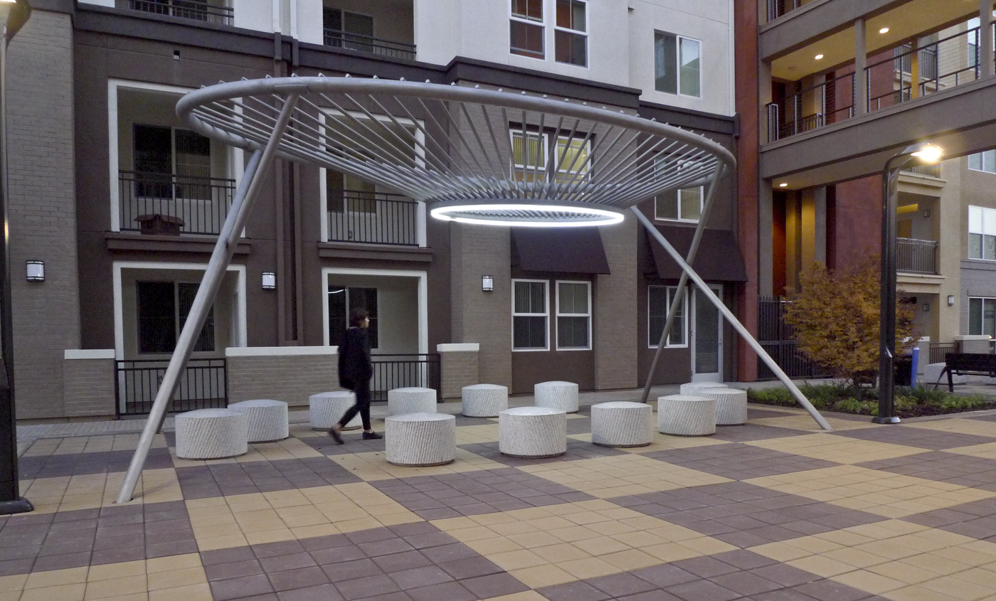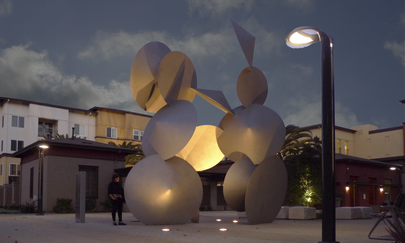 The art plan for Fremont’s State Street Park was to “create a social heart for the city.” The thrust for this development was to bring civic life to a vibrant working and living community while ushering the city center into the 21st century as a modern, forward-thinking urban environment.