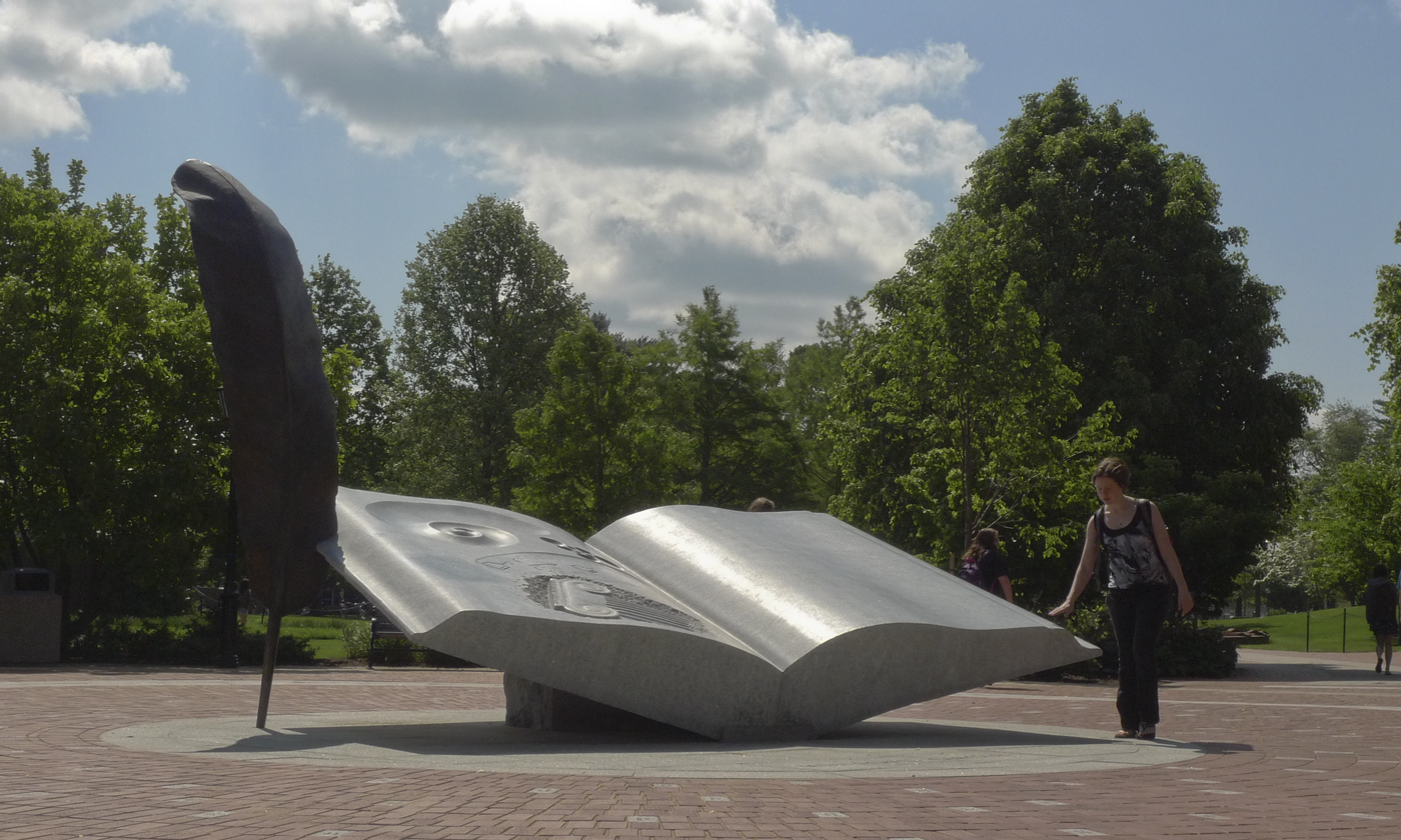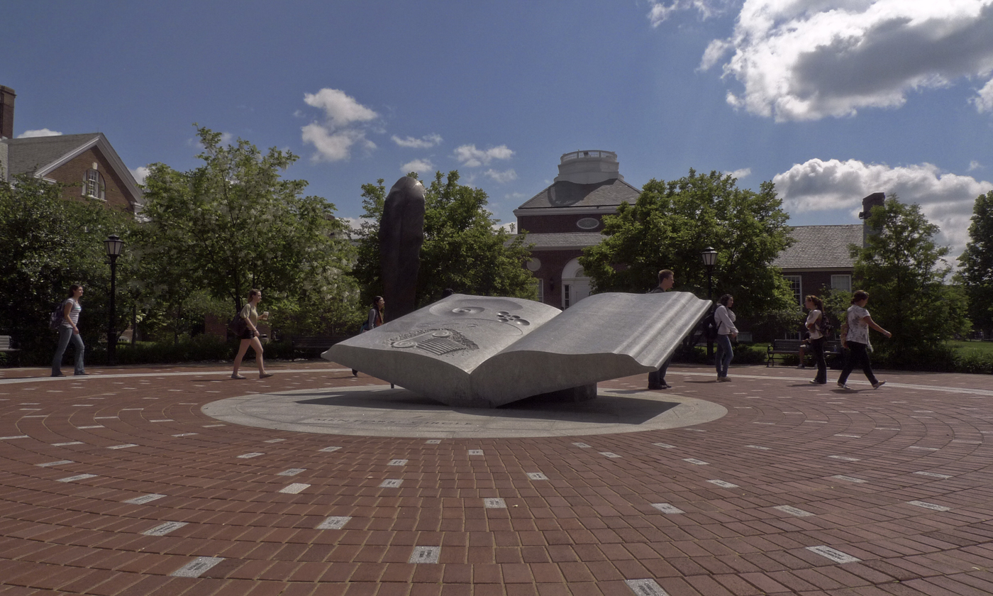 Within Mentors’ Circle at the front entry plaza of the University of Delaware now sits an iconic, symbolic sculpture, Wings of Thought. The granite and bronze form, of an open book and quill, resembles a bird in flight. For nearly 200 years, the open book has symbolically identified the University of Delaware. It is the central image found in the institution’s 1833 seal, synthesizing founder Francis Alison’s powerful guiding philosophy and founding purpose while embodying the university’s commitment to the future.
